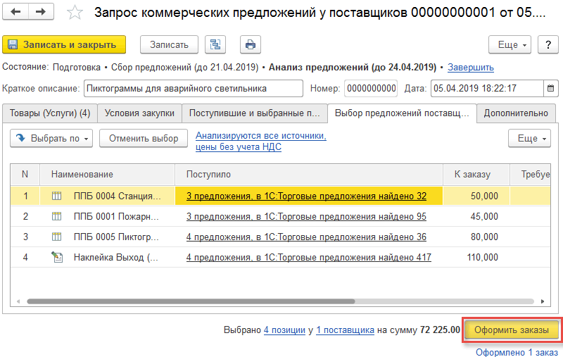 Если покупатель принял ваше предложение и от него поступил заказ на товар или услуги, перейдите по ссылке;«Оформить Заказ покупателя». Состав заказа заполнится автоматически на основании данных из коммерческого предложения.