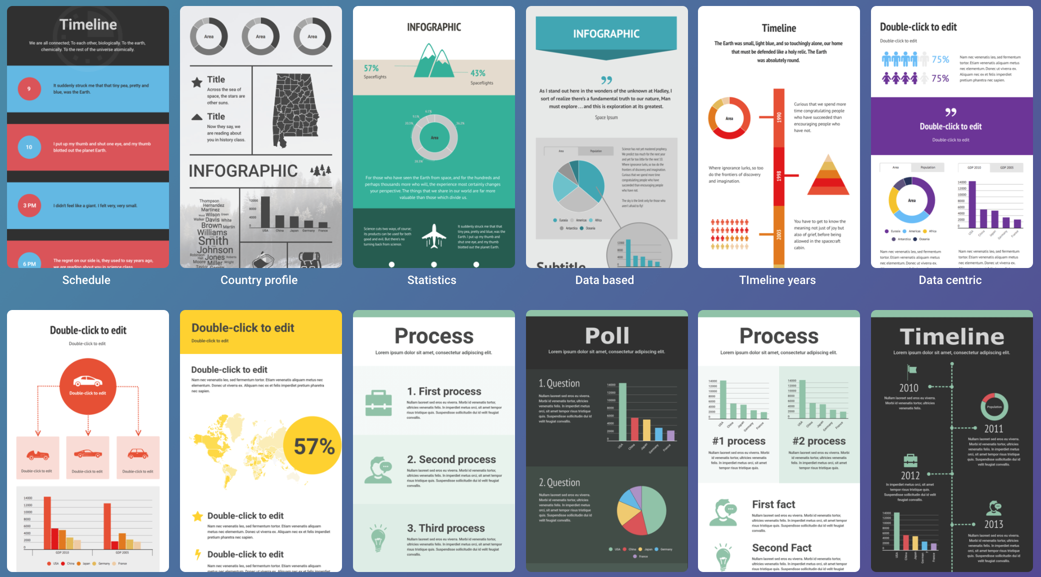 - Π‘reately (http://creately.com/) β ΠΏΠΎΠ·Π²ΠΎΠ»ΡΠ΅Ρ Π²ΡΡΠ°Π²Π»ΡΡΡ ΡΠ²ΠΎΠΈ Π΄Π°Π½Π½ΡΠ΅ Π² Π³ΠΎΡΠΎΠ²ΡΠ΅ ΠΎΠ±ΡΠ°Π·ΡΡ Π΄Π»Ρ ΡΠΎΠ·Π΄Π°Π½ΠΈΡ ΠΊΡΠ°ΡΠΈΠ²ΠΎΠΉ ΠΈ ΠΏΡΠΎΡΠ΅ΡΡΠΈΠΎΠ½Π°Π»ΡΠ½ΠΎΠΉ ΠΈΠ½ΡΠΎΠ³ΡΠ°ΡΠΈΠΊΠΈ.