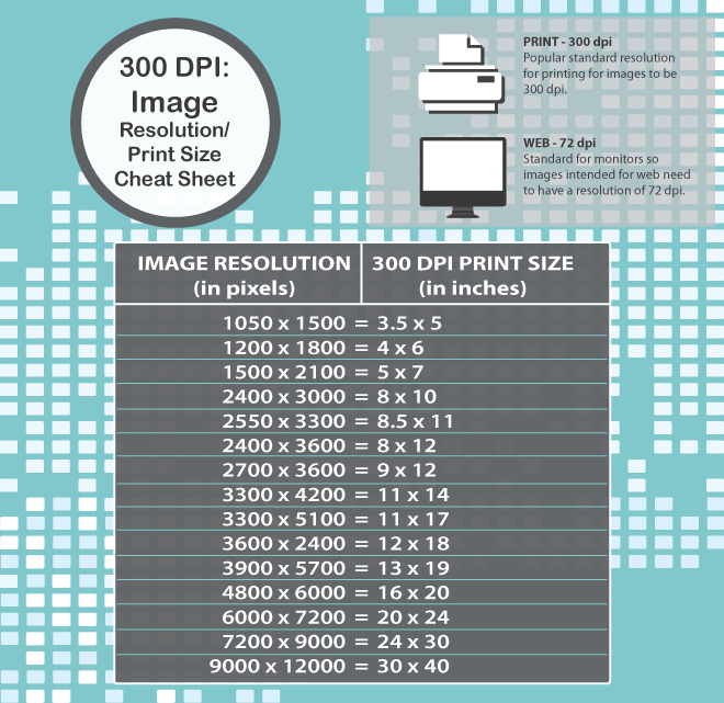 Найти количество пикселей, необходимое для получения изображения с разрешением 300 DPI, очень просто. При необходимости вы можете использовать онлайн-калькуляторы пикселей, но уравнение довольно простое.