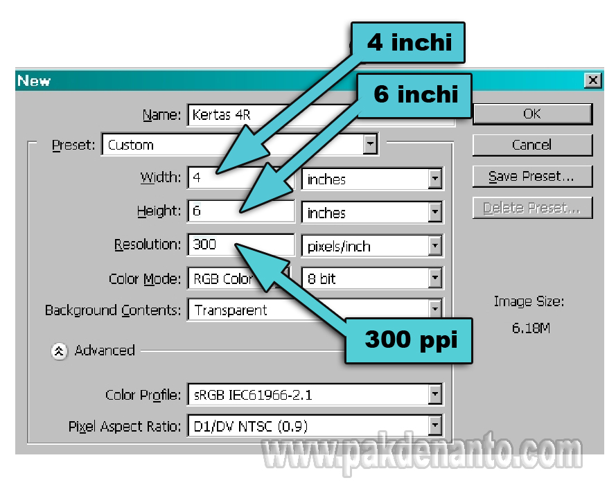 3) Разрешение: это нашеPPI (если в качестве единицы измерения выбраны дюймы).