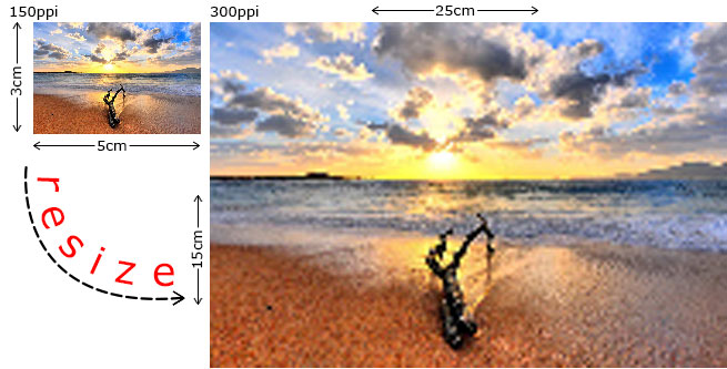 - Масштабирование небольшого изображения, чтобы получить достаточное количество пикселей. Это сделает изображение размытым, окончательныйрезультат не будет лучше, чем исходное изображение, напечатанное с более низким разрешением.
