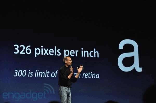 Наконец, Apple утверждает, что человеческое зрение способно разрешать только 326 пикселей на дюйм (поищите в Интернете их маркетинговые материалы «Retina display»). Есть много споров по поводу этого числа, но большинство по-прежнему заявляют о не более 450 пикселей на дюйм.
