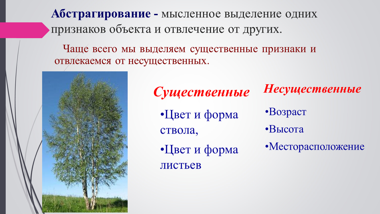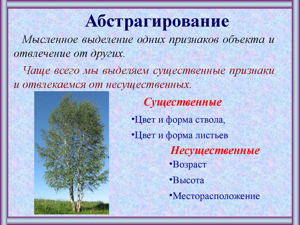 Некоторые типы абстракции, по видам несущественного: