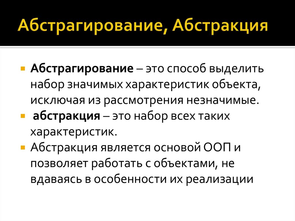 • Абстракция — процесс, то же что и «абстрагирование»