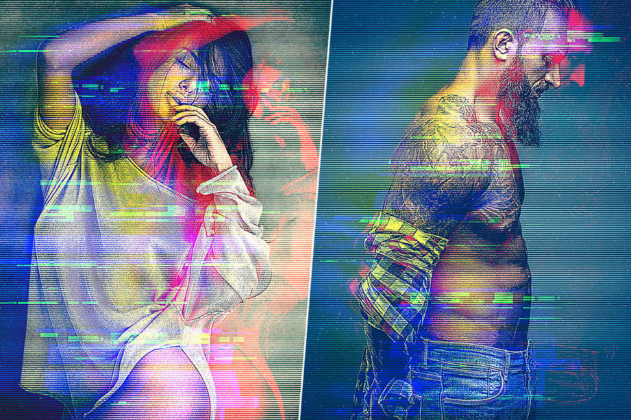 Бесплатные и платные экшены Photoshop с эффектом глюка