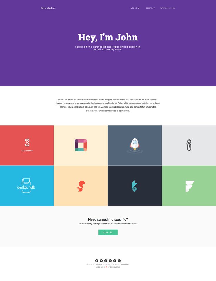 Плоский дизайн этого шаблона сайта в стиле минимализма отлично подойдет для создания портфолио. В шаблоне все детали выверены идеально!