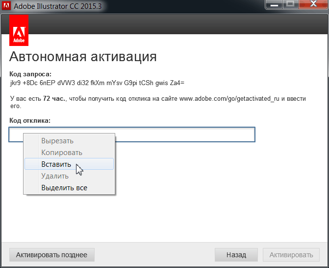. Эта ссылка направляет вас на страницу входа в Adobe, где вы можете войти с помощью своего Adobe ID.После успешного входа в систему с помощью Adobe ID введите код запроса и серийный номер, которые использовались для создания кода запроса, и нажмите «Создать код ответа».