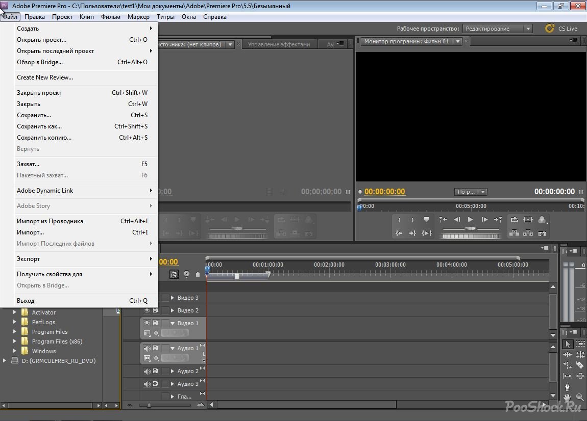 Импорт файлов В Adobe Premiere существует несколько способов импорта файлов мультимедиа. Вы можете выбрать Импорт через меню «Файл» (⌘I) или перейти к местоположению вашего мультимедиа через Media Browser .