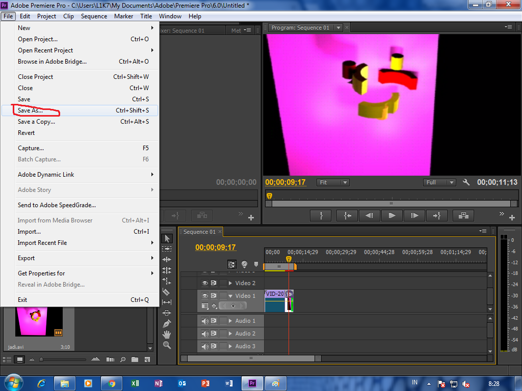 Рабочие окна (Project, Source, Timeline) |