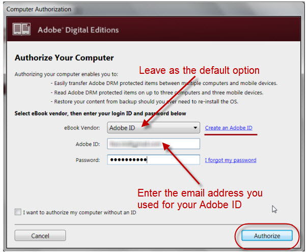 Если у вас еще нет бесплатного Adobe ID, нажмите кнопку «Присоединиться сейчас» и следуйте инструкциям, чтобы создать его. Если у вас есть Adobe ID, нажмите кнопку «Связать мой Adobe ID».