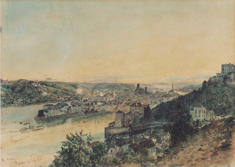 Походы и поездки, которые он совершал с отцом в австрийские Альпы и северную Италию, пробудили в нем любовь к пейзажам, которые он писал акварелью в очень реалистичном и детальном стиле. В 1833 году он посетил Венецию и соседние города и написал множество архитектурных картин .