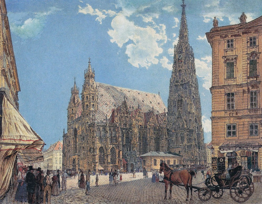 - Собор Святого Стефана в Вене , 1832 г., холст, масло, 46 × 57 см , Österreichische Galerie Belvedere .