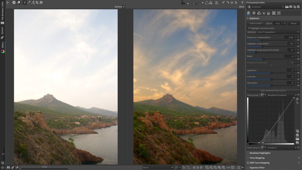 Бесплатный Photivo с открытым исходным кодом предоставляет все необходимые функции для работы с RAW‑файлами: есть цветовые каналы, фильтры, предустановки и массовая обработка изображений.