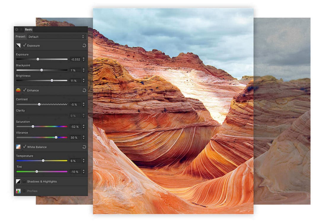 Affinity также может обрабатывать большие изображения и файлы RAW и поддерживает инструменты, которые можно использовать для высококачественной ретуши, такие как частотное разделение, удаление пятен, пластику, набор кистей и многое другое. Помимо базовых настроек, Affinity Photo также поддерживает сшивание панорам, редактирование HDR и наложение фокуса. Большая библиотека кистей, поддержка планшетов и Apple Pencil делают Affinity привлекательным как для фотографов, так и для художников.