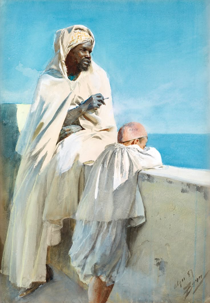 Плакат мужчина и мальчик в Алжире