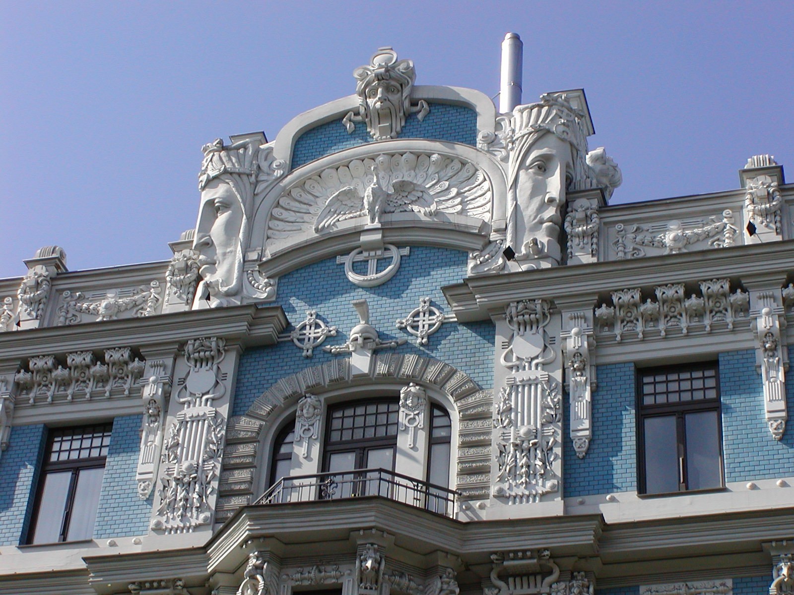 Улица в Риге, Латвия содержит несколько прекрасных примеров элементов дизайна в стиле модерн. Только об архитектуре этого города можно было бы написать целую серию статей.