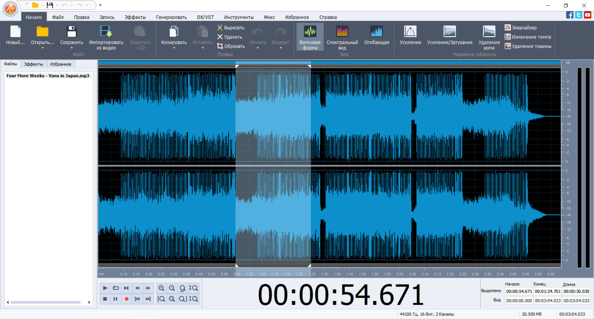 Mp3DirectCut – простой редактор аудиофайлов на русском языке для тех, кому нужно обработать MP3-файлы без перекодировки и изменения оригинальных параметров.