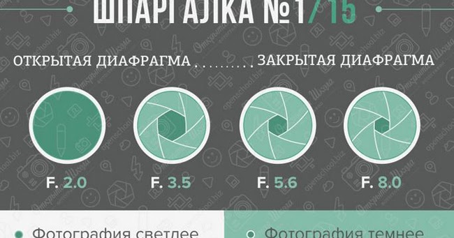 Это первый термин в фотографии, который вы должны запомнить. Диафрагма – размер отверстия в объективе. Подумайте об объективе, как об окне – большие окна пропускают больше света, в то время как маленькие окна – меньше. Широко открытая диафрагма пропустит больше света для более светлого фото, узкая диафрагма поможет создать более тёмную фотографию. Диафрагма измеряется в делениях диафрагмы: 1/8 – широко открытая диафрагма; 1/22 – очень узкое отверстие диафрагмы. Диафрагма является одной из трёх настроек камеры, которые определяют экспозицию изображения, либо насколько тёмным или светлым оно будет. Диафрагма также определяет насколько сфокусированным будет изображение – широкая диафрагма создаст мягкий, расплывчатый фон, а узкое отверстие может сделать наиболее резкие фотографии.