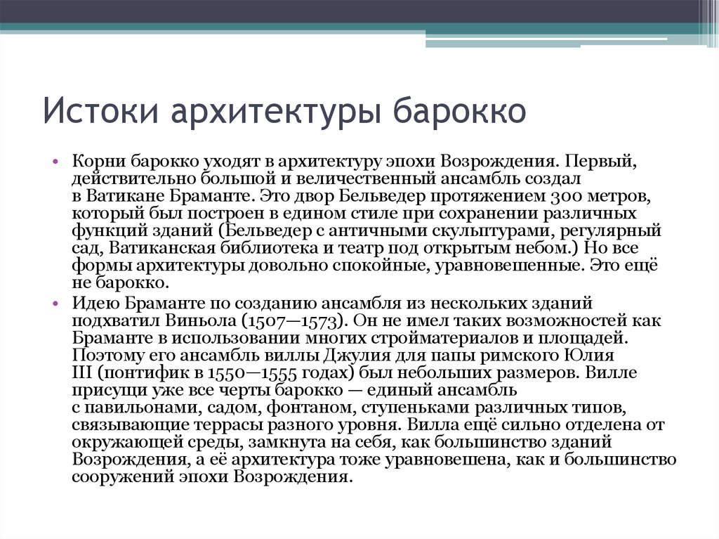 … ’. А также скульптуры периода барокко в Италии и Франции были привязаны к зданиям архитекторов.