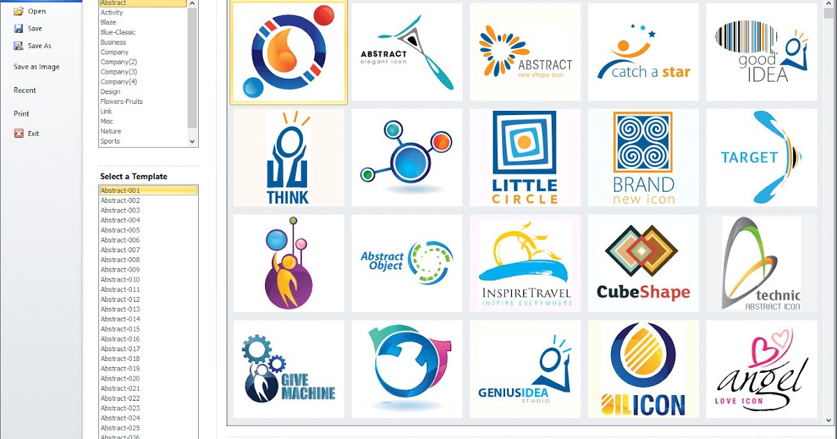 - Более 10,000 XNUMX профессионально разработанных шаблонов логотипов в различных категориях, таких как абстракция, животные, бизнес, мода, спорт, украшения, еда, путешествия, технологии и многое другое.