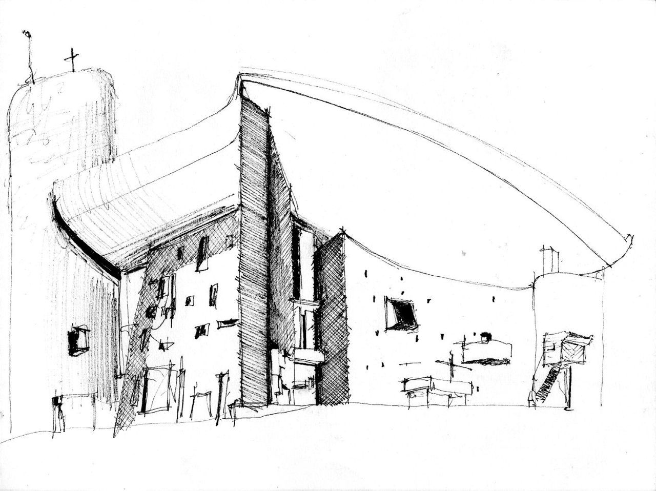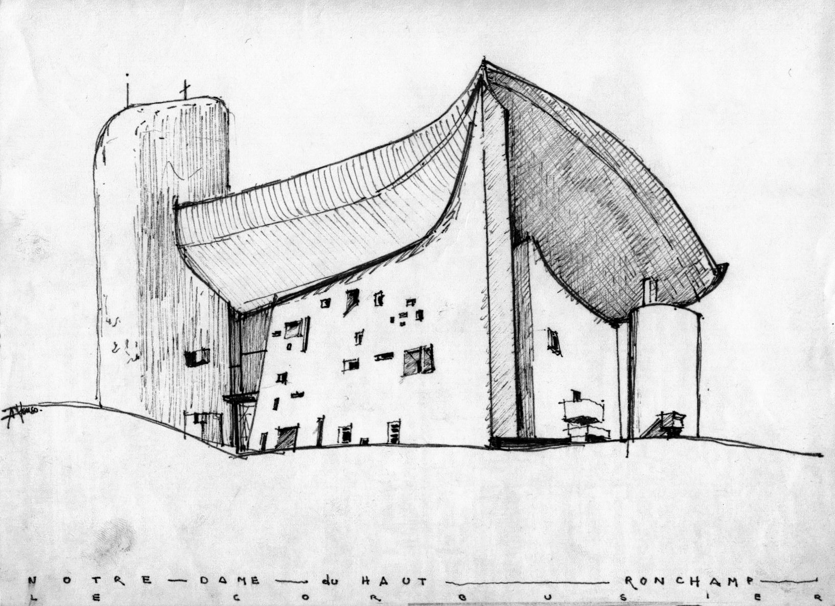 Атеист Ле Корбюзье взялся за работу при условии полной творческой свободы. Вдохновение он нашел в найденной на пляже большой раковине, которая показалась ему выражением абсолютной защищенности.