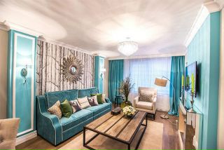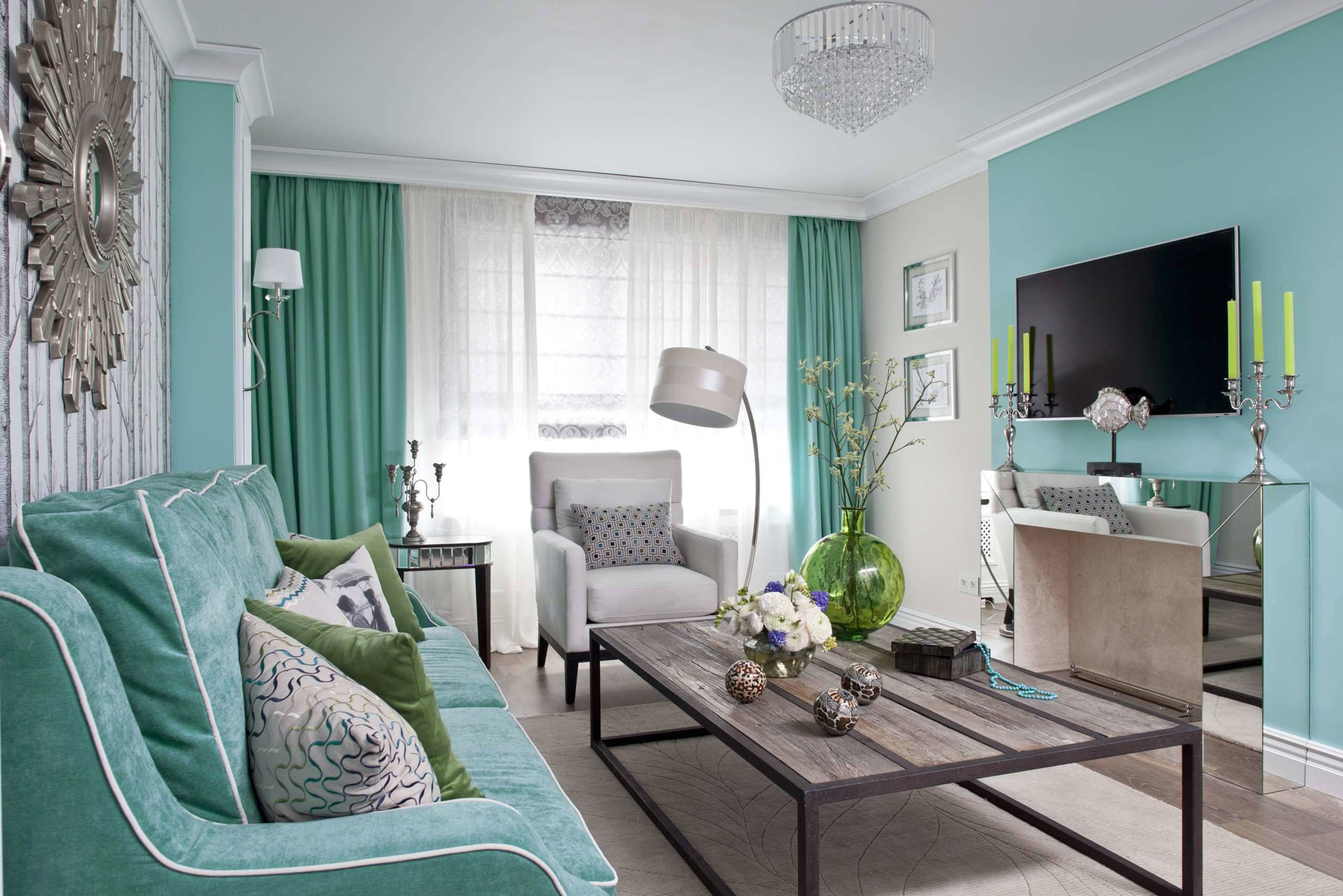 Бирюзовый цвет в интерьере гостиной