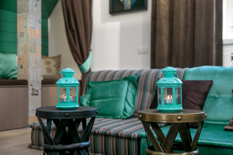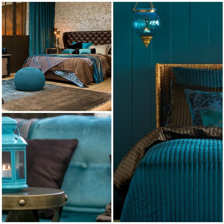 Сочетание бирюзового и коричневого в интерьере