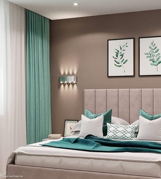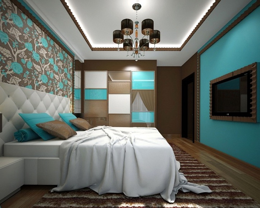 Бирюзово коричневая спальня
