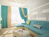 Гостиная с бирюзовыми шторами