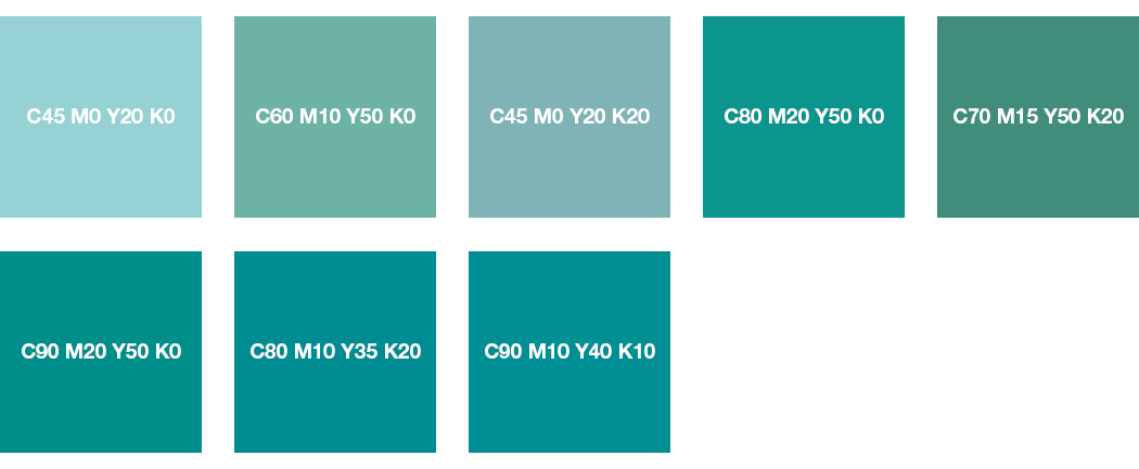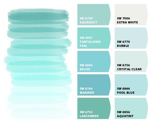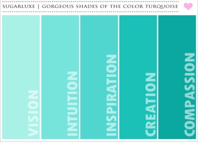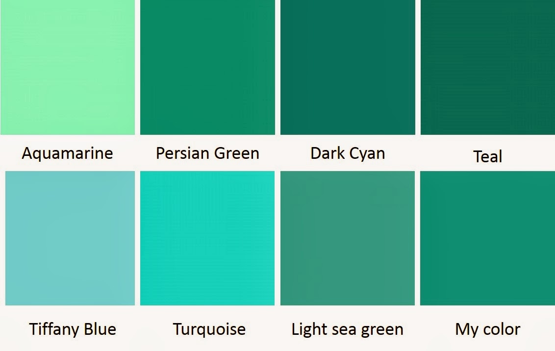 четкое различие между цветом морской волны, бирюзовым, бирюзовым и мятным.
