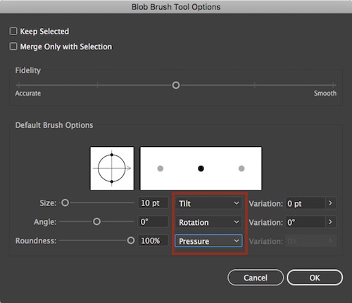 Следующий совет может быть выполнен только с таблеткой, которая имеет чувствительные к давлению, но если вы хотите сделать свой совет. линии более динамичны, в Illustrator есть настройка, позволяющая изменять толщину линий в зависимости от того, насколько сильно вы нажимаете на планшет. Чтобы изменить инструмент «Кисть-клякса» на чувствительный к давлению, дважды щелкните инструмент «Кисть-клякса», чтобы открыть окно параметров кисти-кляксы.