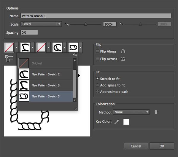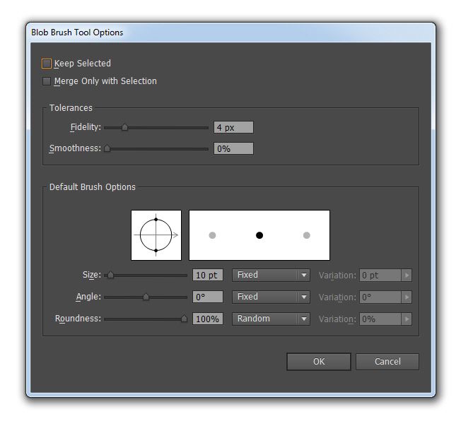 Есть также несколько дополнительных опций, таких как фиксированный размер или введение рандомизации и вариации размера (а также угла и округлости), а также настройки для комбинации арт-блокнота и пера. Нажмите «ОК». Следует отметить, что рандомизация производится для каждого удара, а не, к сожалению, во время фактического применения каждого удара. Рандомизация ограничена размером, поэтому, если вы установите его на 20pt, рандомизация также будет ограничена 20pt (что, должен признать, меня очень расстраивает).