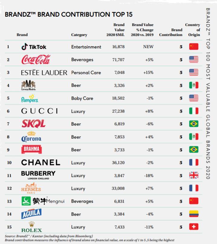 | 98 | 127 | CHANEL | France | Apparel | $19,386 | +27.0% | $15,260 |