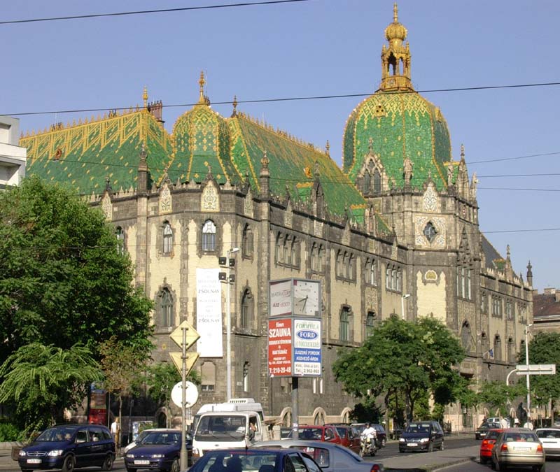 Некоторые замечательные примеры включают Музей прикладного искусства , с его поразительной зеленой черепичной крышей, Дом Линденбаума, еще одно здание, залитое зеленью, Ванны Геллерта , гордо возвышающиеся под статуей Геллерт-Хилл, и довольно очаровательный Дом Гутенберга.
