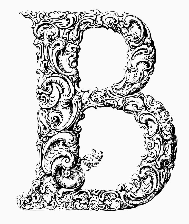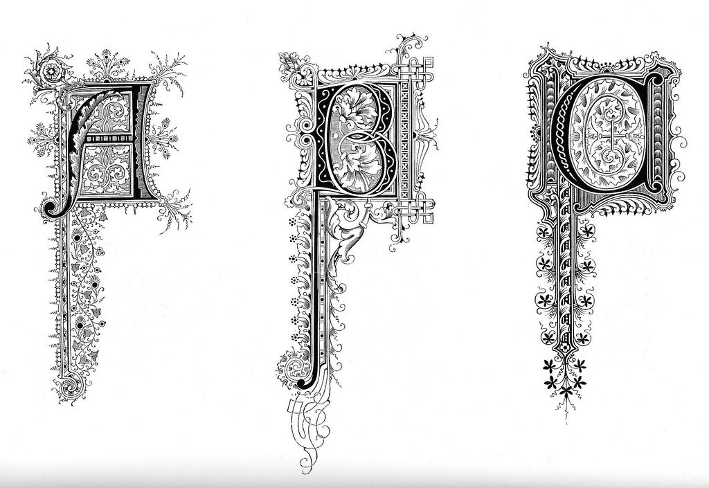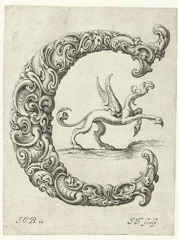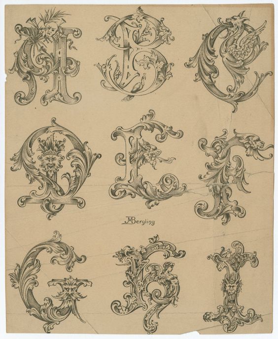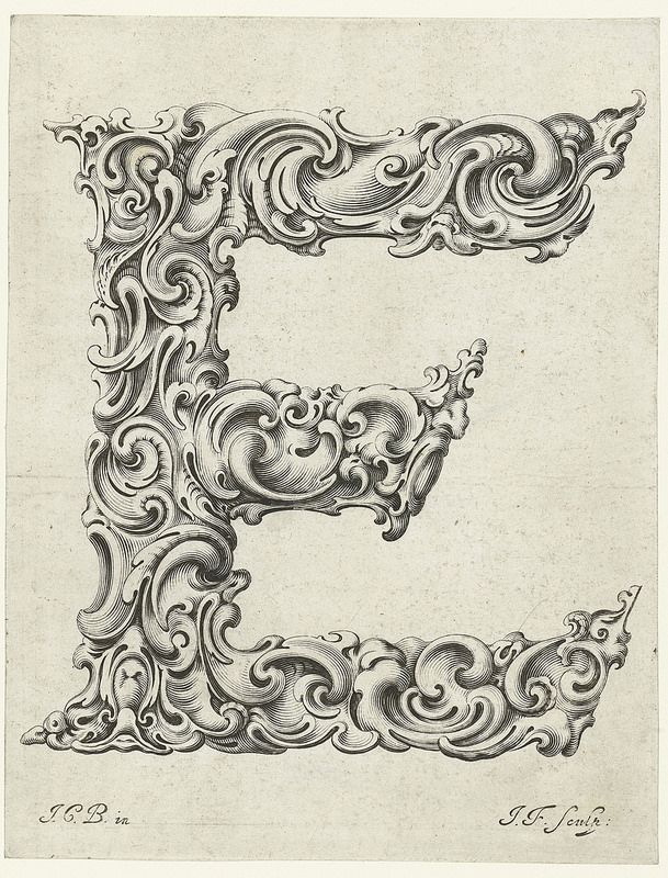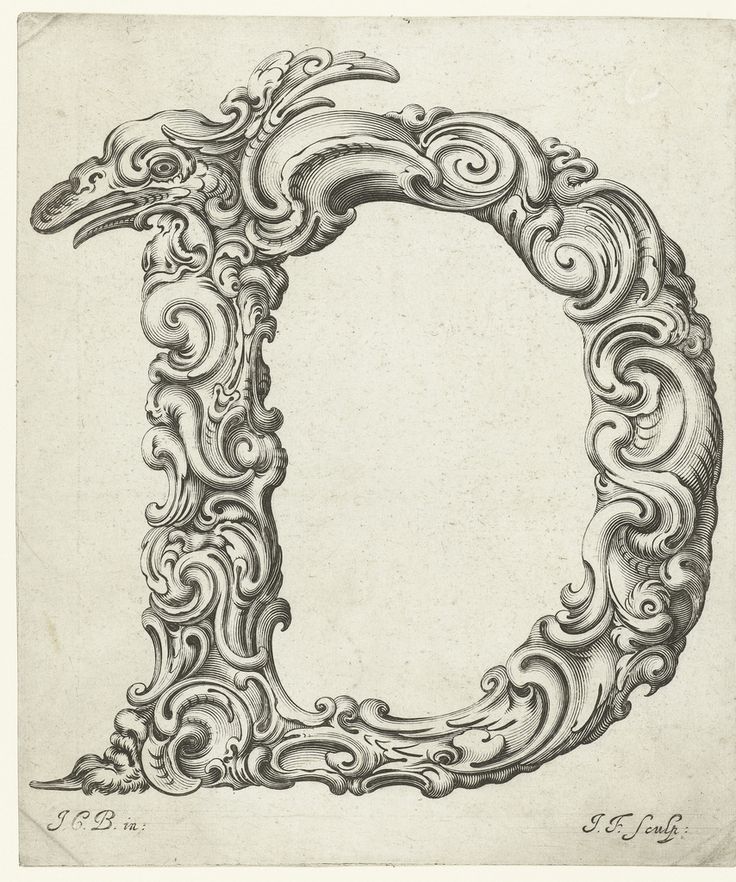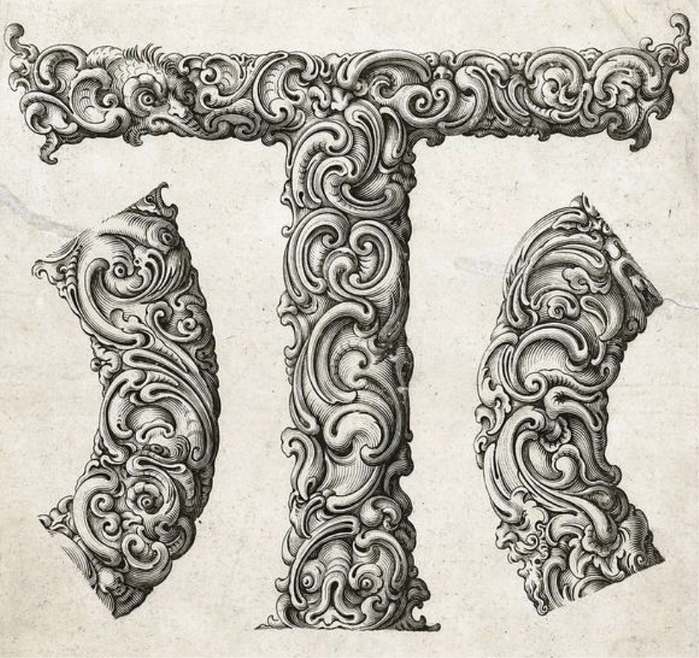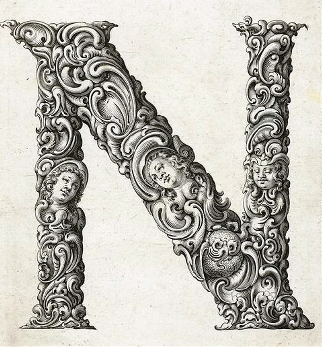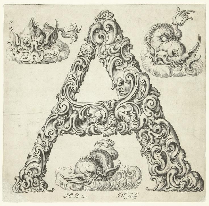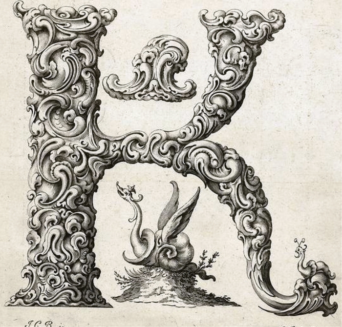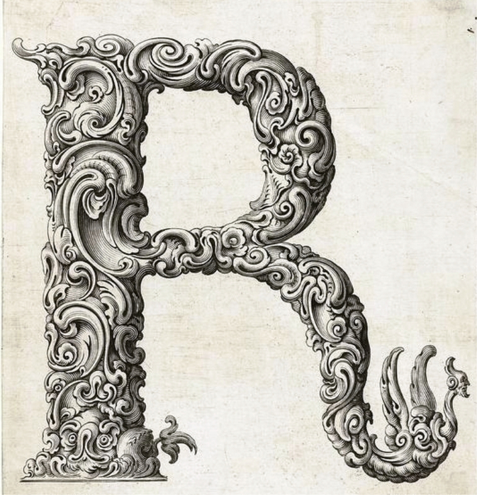 Барочная лепнина инициалов почти не нуждалась в дополнительном орнаменте. Её вычурный рисунок изначально сочетал в себе свойства алфавитного знака и декоративного узора. Письмо и орнамент настолько растворились друг в друге, что невозможно было их разделить. Недаром в этот период широко распространились каллиграфические алфавиты, позволявшие почти безгранично экспериментировать с формами букв.