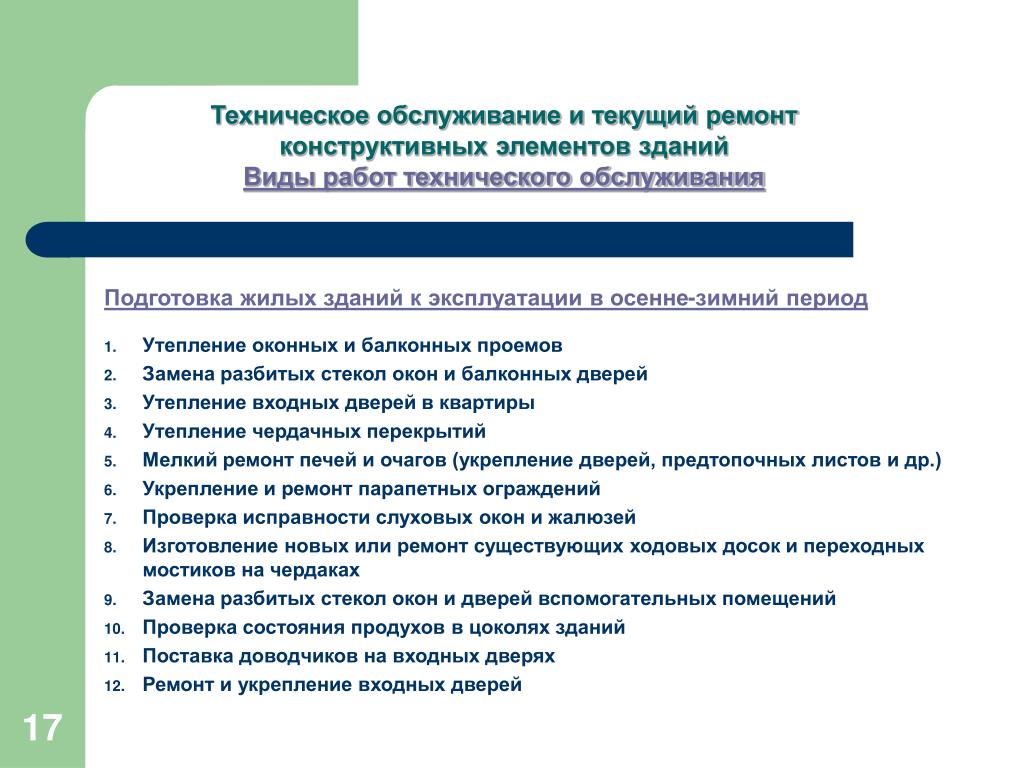 Перечень мероприятий и основных видов работ, позволяющих классифицировать ремонт как капитальный: