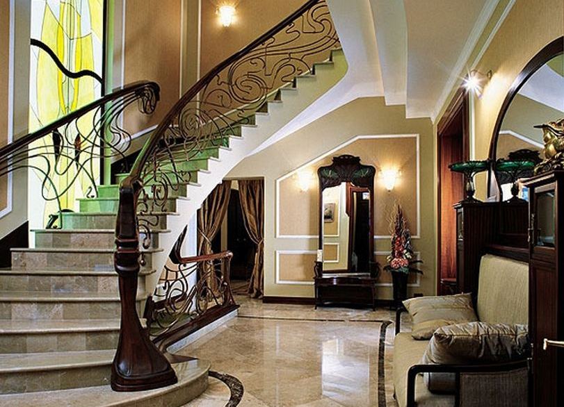 мастеров Р. Ф. Ларша, А. Шарпантье, Э. Грассе; ювелирные украшения и др. изделия Р. Лалика и фирмы Картье; дизайн мебели Галле, Гимара, Л. Мажореля, Ж. Хёнтшеля во Франции, также Х. К. ван де Велде, А. Гауди, Ч. Войзи, Ч. Р. Макинтоша, П. Беренса, Й. Хофмана, Ф. Брэнгвина и др.