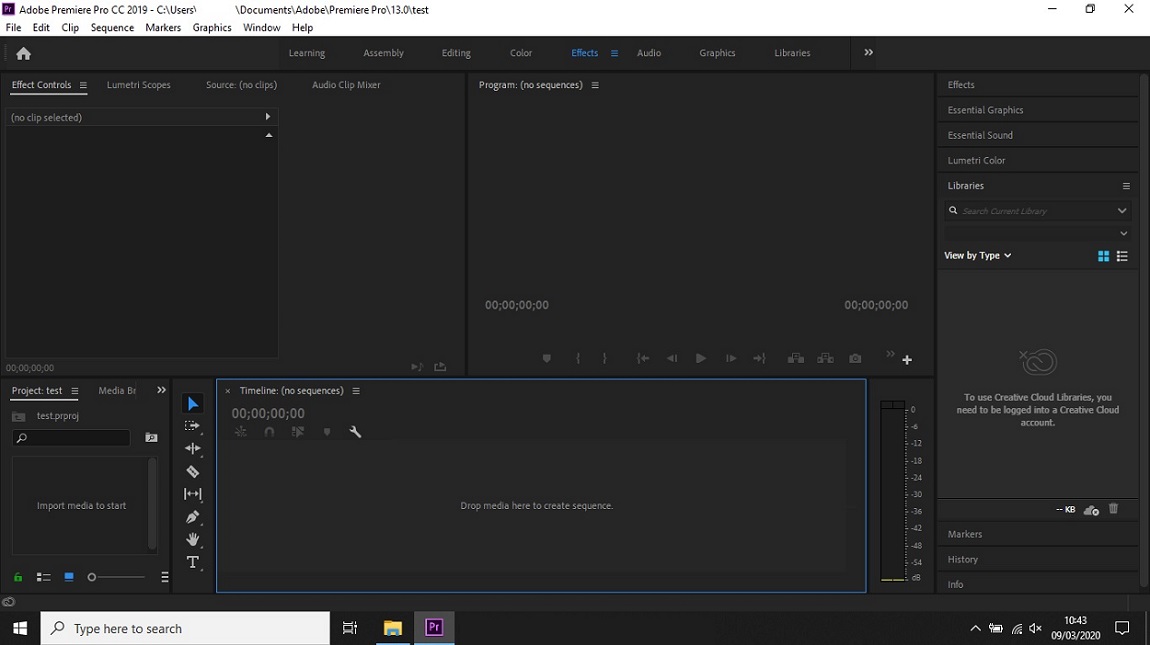 Начало работы в программе ничем не отличается от предыдущей версии Premiere Pro: пользователя встречает знакомое окно со списком открывавшихся проектов и кнопками создания нового или открытия существующего проекта.