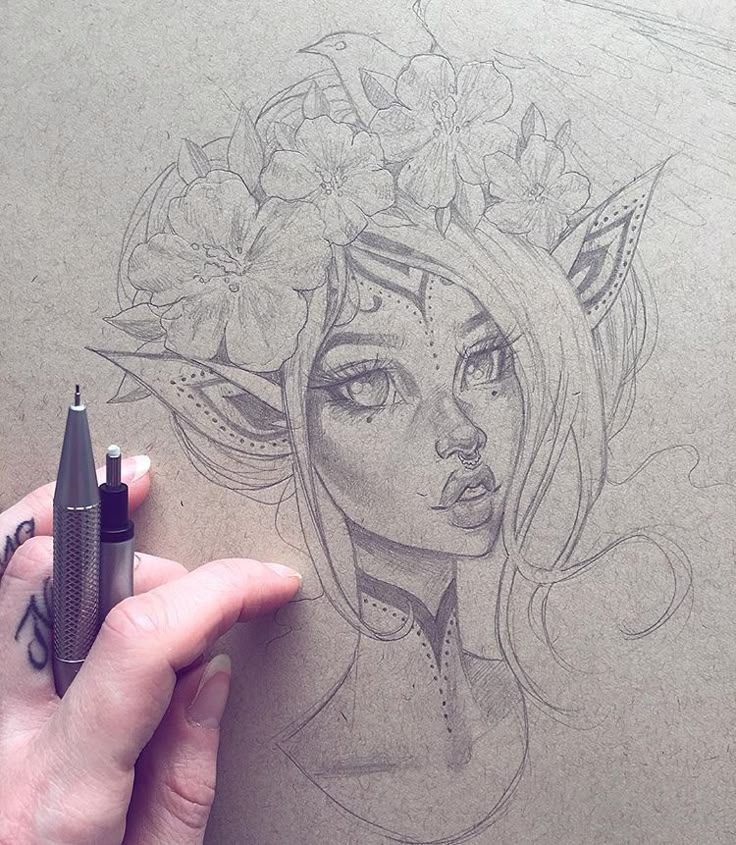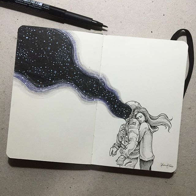«У меня всегда под рукой ручка и блокнот, так что я могу рисовать где угодно; как в аналоге, так и на iPad. Я всегда натыкаюсь на предыдущие каракули в своем блокноте, и они служат хорошим напоминанием о том, что время от времени нужно уделять личное время».