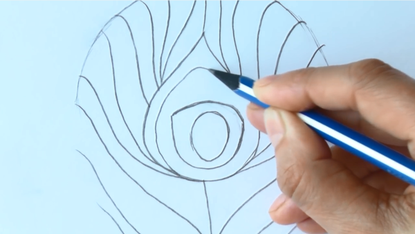 - Начиная с центральной точки, созданной тремя линиями, аккуратно нарисуйте над ними несколько слегка изогнутых линий.