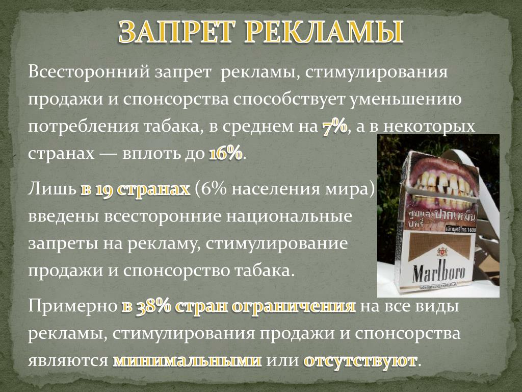 Однако разрешена реклама услуг по планированию семьи и противозачаточных средств.