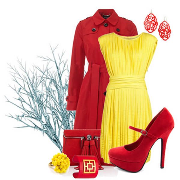 Красный и желтый – жизнерадостное и яркое сочетание цветов. Оба цвета теплые, что делает подобную комбинацию сочной. Использование ее уместно в одежде молодых людей и девушек. Так же отлично смотрится на детской одежде. Также данное сочетание уместно использовать в декорации кухни.