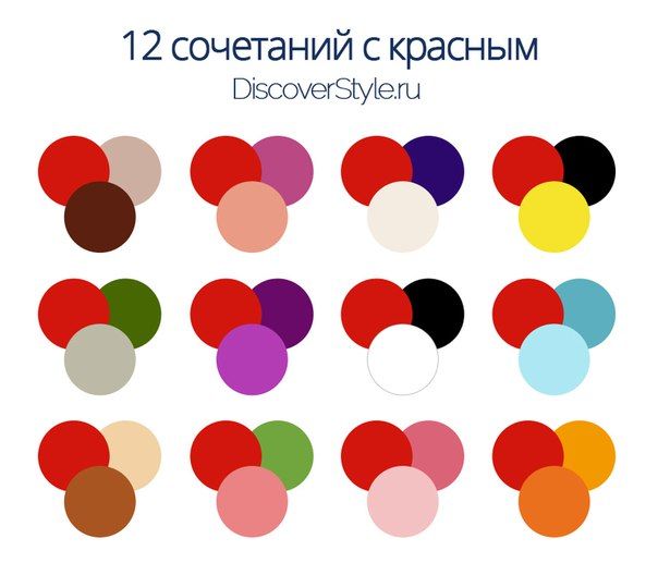 Чем дальше от красного по цветовому кругу находится тон, с которым цвет сочетают, тем более броско будет смотреться совокупность оттенков. Но это не значит, что они не будут гармонично восприниматься.