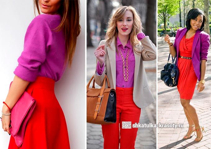Важно понимать, что сочетание данных цветов в одежде подойдет только женщинам с цветотипами «зима» и «весна», чья внешность сама по себе выглядит ярко и необычно.