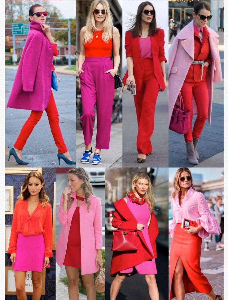 РозовыйПринято считать, что красный и розовый не следует использовать вместе, поскольку они конфликтуют и могут создать образ, напоминающий День святого Валентина. Тем не менее, розовый — это один из цветов, который при правильном использовании сочетается с красным и может помочь создать потрясающий внешний вид.