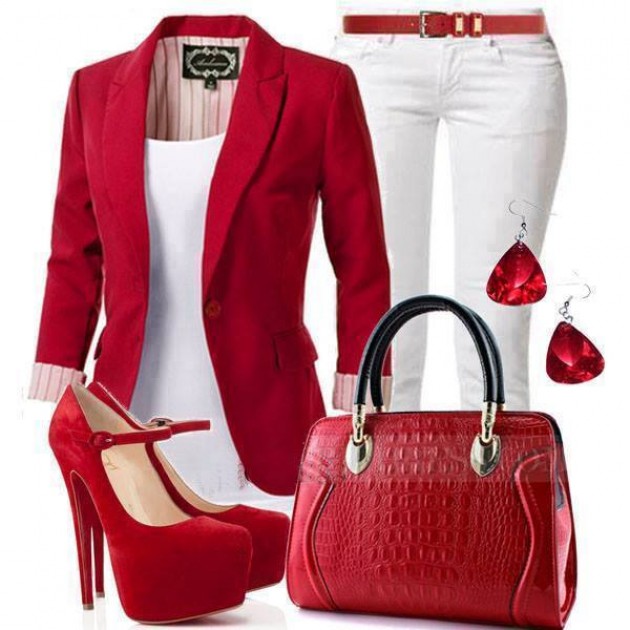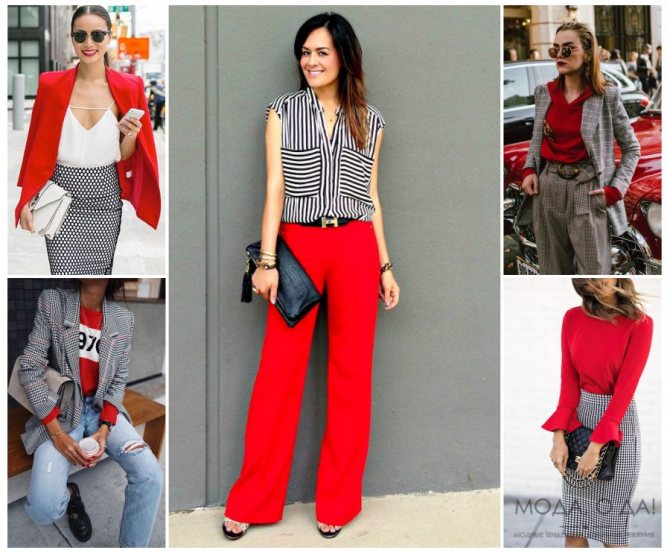 Например, днем красные брюки со строгой рубашкой – это хороший офисный вариант, а вечером черный топ и красные брюки – это вариант для вечеринки.