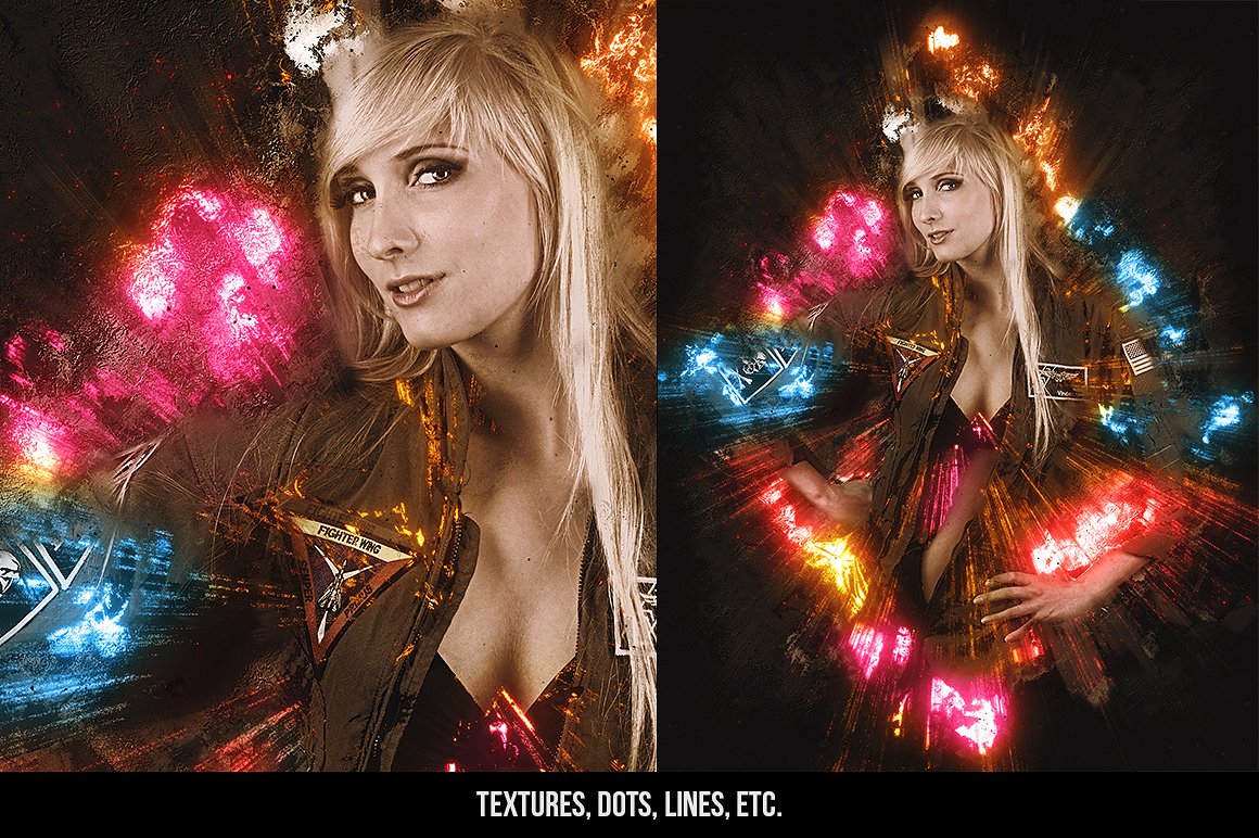 Этот пакет содержит пять различных действий, а также PSD-файлы и слои, которые вам понадобятся для создания этого эффекта.