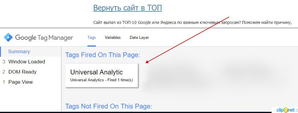 Если контейнер Google Tag Manager внедрен корректно, его можно будет увидеть.