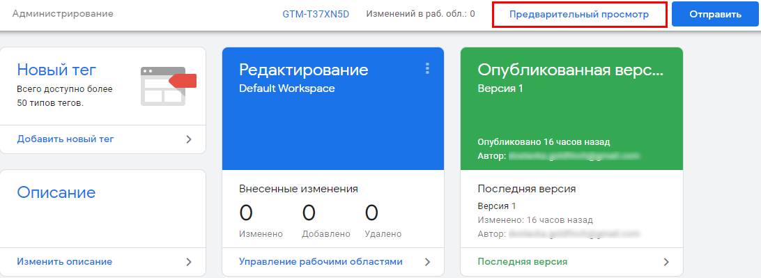 - Внесенные изменения начинают действовать на сайте, когда контейнер опубликован. До этого момента мы можем проверять работу счетчиков и целей с помощью режима предварительного просмотра. Как только убедимся, что все работает правильно, контейнер можно опубликовать.