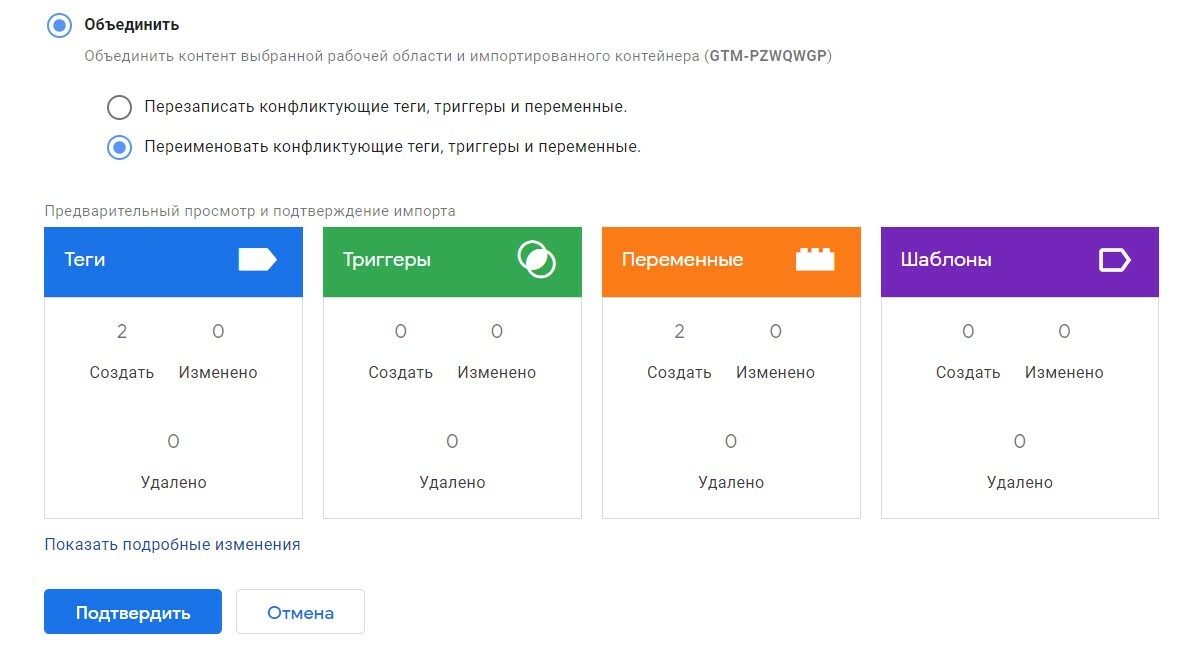 - Использовать «Последовательность тегов» (Tag Sequencing), «Рабочие области» (Workspaces), «Подтверждение» (Approvals) и другие полезные опции в GTM.